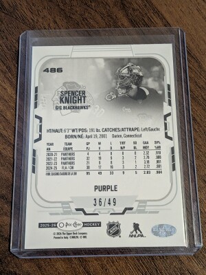 Spencer Knight /49 purple parallel Chicago Blackhawks OPC 2025-26 O-pee-chee