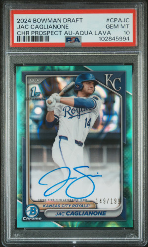 2024 Bowman Draft Chrome Prospect Autographs Jac Caglianone Chr Prospect Au-Aqua Lava