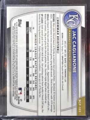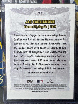 JAC CAGLIANONE 2025 BOWMAN CHROME IT CAME TO THE LEAGUE #IT-4 KANSAS CITY ROYALS