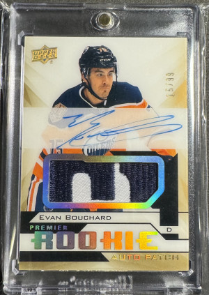 2018-19 Upper Deck Premier Evan Bouchard Rookie Auto Patch-Gold /99