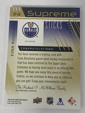 2025-26 SP Game Used Evan Bouchard Supreme Stick /15