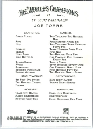 2025 Panini Prizm #138 Joe Torre - Atlanta Braves
