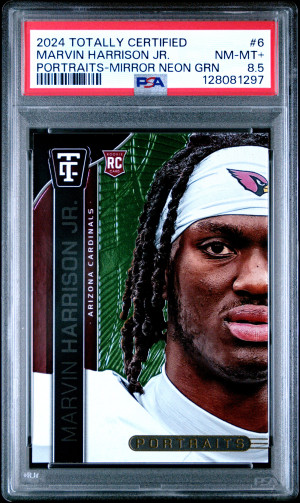 2024 Panini Totally Certified Portraits Marvin Harrison Jr. Portraits Mirror Neon Green /299 PSA 8.5