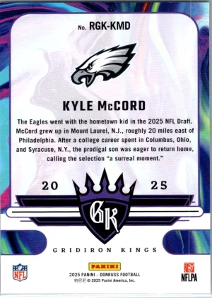 2025 Donruss #RGK-KMD Kyle McCord Rookie Gridiron Kings
