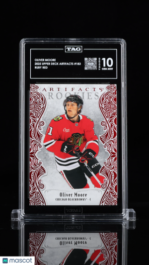 2025 Upper Deck Artifacts Oliver Moore #183 Ruby Red 104/599 Rookie TAG 10