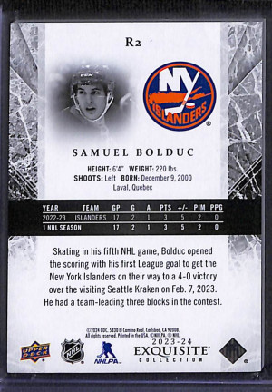 2023-24 Upper Deck Exquisite Collection Samuel Bolduc #R2 Rookie Insert 372/499