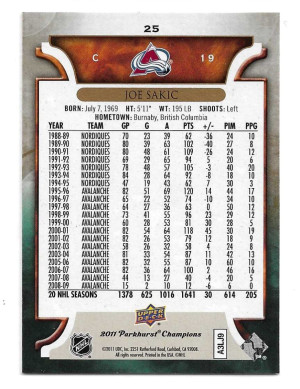2011-12 Parkhurst Champions #25 Joe Sakic - Colorado Avalanche
