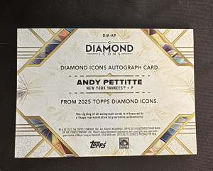 2025 Diamond Icons Autograph Andy Pettitte 4/25