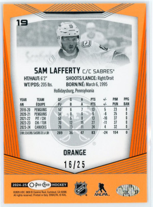 2024-25 O-Pee-Chee #19 Sam Lafferty Orange 16/25
