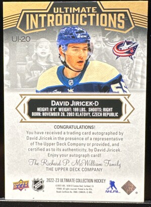 David Jiricek, 2022-23 Ultimate, Ultimate Introductions, Auto