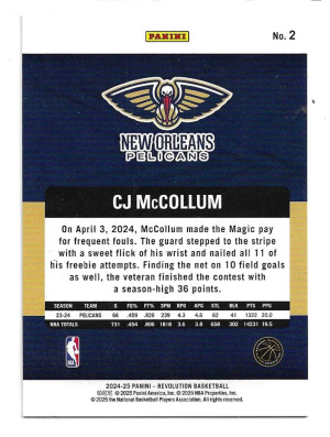 2024-25 Panini Revolution #2 CJ McCollum -New Orleans Pelicans