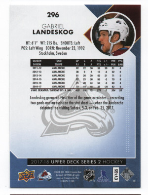 2017-18 Upper Deck ePack Gold Rainbow Foil Parallel #296 Gabriel Landeskog