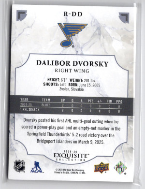 25/26 EXQUISITE COLLECTION GOLD SPECTRUM ROOKIE #R-DD DALIBOR DVORSKY RC (11/25)