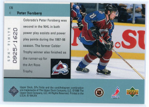 1998-99 SPx Finite #178 Peter Forsberg League Leaders 926/1620