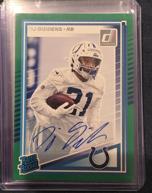 DJ GIDDENS 2025 DONRUSS RATED ROOKIE AUTOGRAPH GREEN RC AUTO