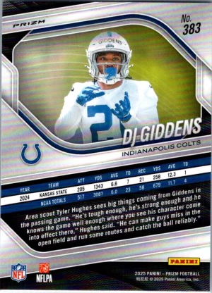 2025 Panini Prizm #383 DJ Giddens Lazer