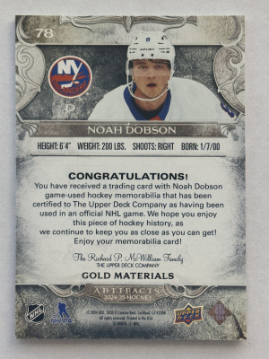 2024-25 Upper Deck Artifacts Noah Dobson Gold Materials Dual Jersey /299