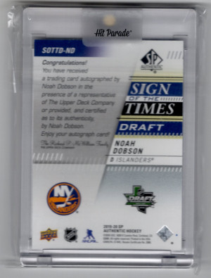 2019-20 SP Authentic Noah Dobson Sign Of The Times Draft *INSCRIBED* Auto /50