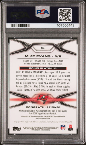 2014 Topps Platinum Rookie Autograph Mike Evans Rookie Au-Pulsar Ref.