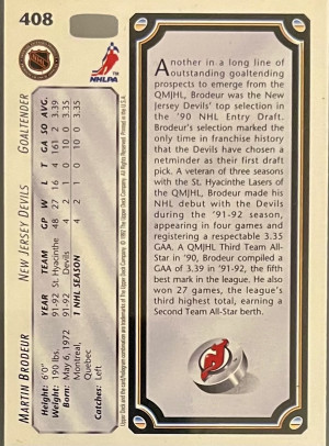 1992–93 Upper Deck Star Rookies Martin Brodeur Rookie Card