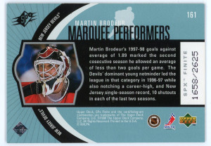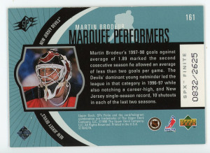 1998-99 SPx Finite #161 Martin Brodeur Marquee Performance /2625
