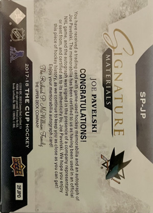 2017–18 Upper Deck Signature Materials Joe Pavelski Patch Autograph /99