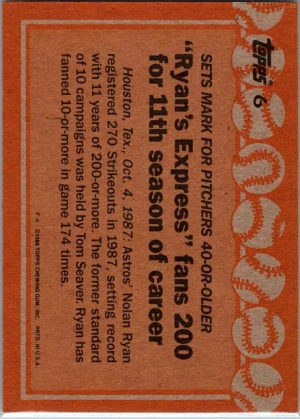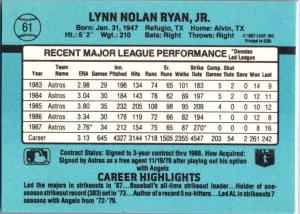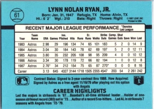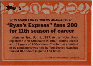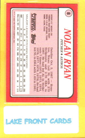 Nolan Ryan [Revco] #8 1988 Topps League Leaders