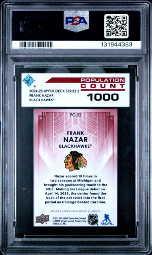 2024 Upper Deck Population Count 1000 Frank Nazar #PC32 Rookie Low Pop PSA 10
