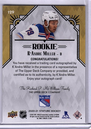 2022-23 SP Authentic K'Andre Miller Sign of the Times Auto #SOTT-KM Rangers
