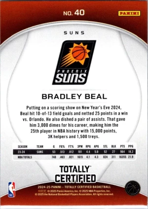 2024-25 Panini Totally Certified #40 Bradley Beal