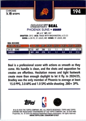 2025-26 Topps Chrome #194 Bradley Beal