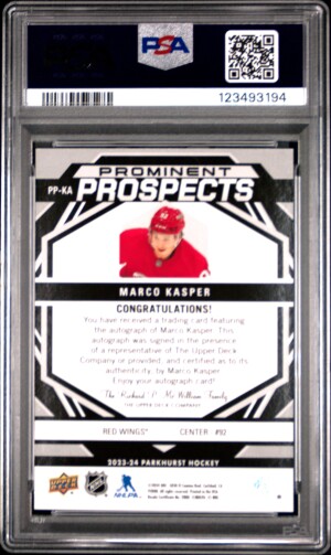 2023 Upper Deck Parkhurst Prominent Prospects /25 Marco Kasper Prominent Pros-Auto-Blue