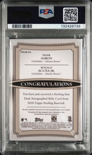 2020 Topps Sterling Sets Dual Autograph Relics R.acuna Jr./H.aaron Sets Dual Auto Relics PSA 8