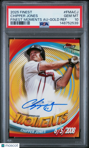 2025 Topps Finest Moments Baseball Chipper Jones #FMACJ Gold Ref /50 Auto PSA 10