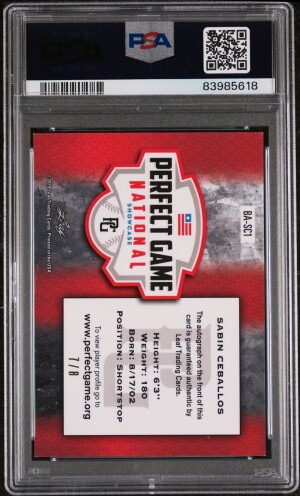 2019 Leaf Perfect Game Baseball Sabin Ceballos #SC1 Purple Auto /8 PSA 9
