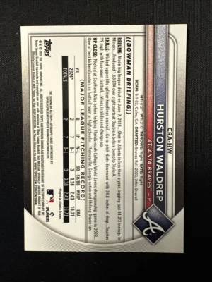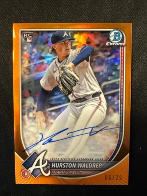 2025 Bowman Chrome Hurston Waldrep RC Auto Orange /25 Braves Rookie Autograph