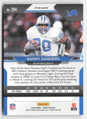 2020 Panini Prizm #204 Barry Sanders Prizm Lazer