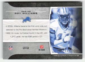 2008 Playoff Prestige #PPR-22 Roy Williams Prestigious Pros Blue #821/1000