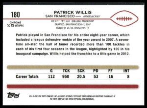 2024 Topps Chrome Patrick Willis #180 Pink Refractor