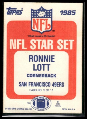1985 Topps Ronnie Lott #5 Glossy NFL Stars