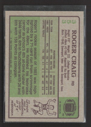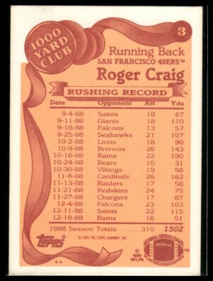 1989 Topps Roger Craig #3 1000 Yard Club