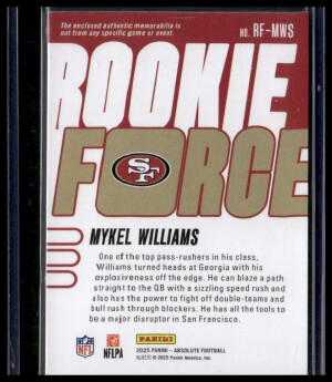 2025 Panini Absolute Football Rookie Force Mykel Williams #RF-MWS Jersey Patch RC