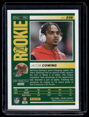 2024 Panini Encore Jacob Cowing #236 Orange SN,RC