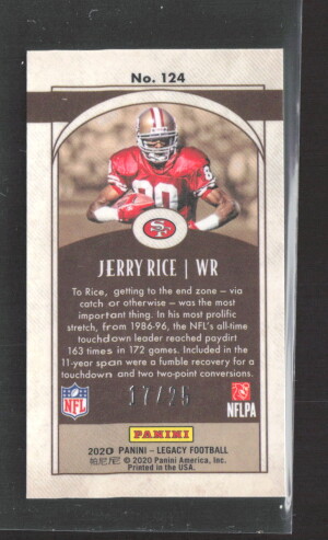 2020 Panini Legacy Football Jerry Rice #124 /25