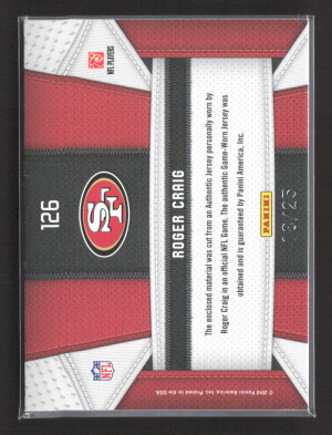 2010 Panini Certified Fabric of the Game Roger Craig #126 Prime /25 Game-Worn Jersey Patch