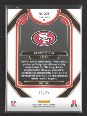 2025 Panini Select Prizm Brock Purdy #226 Purple Disco /25