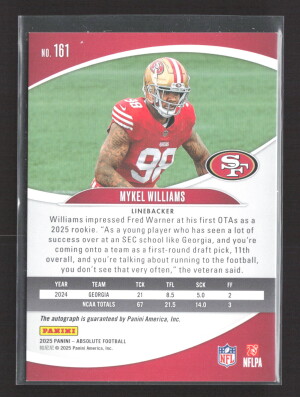 2025 Panini Absolute Football Mykel Williams #161 RC