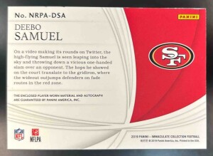 Immaculate Collection Deebo Samuel #NRPA-DSA Immaculate Numbers Rookie Patch Autographs