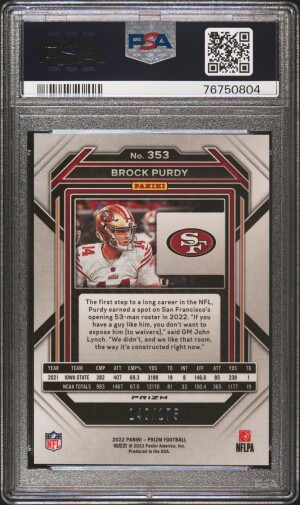 2022 Panini Prizm Brock Purdy #353 Hyper /175 Rookie PSA 10