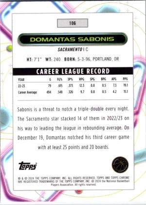 2023-24 Topps Chrome Cosmic #106 Domantas Sabonis